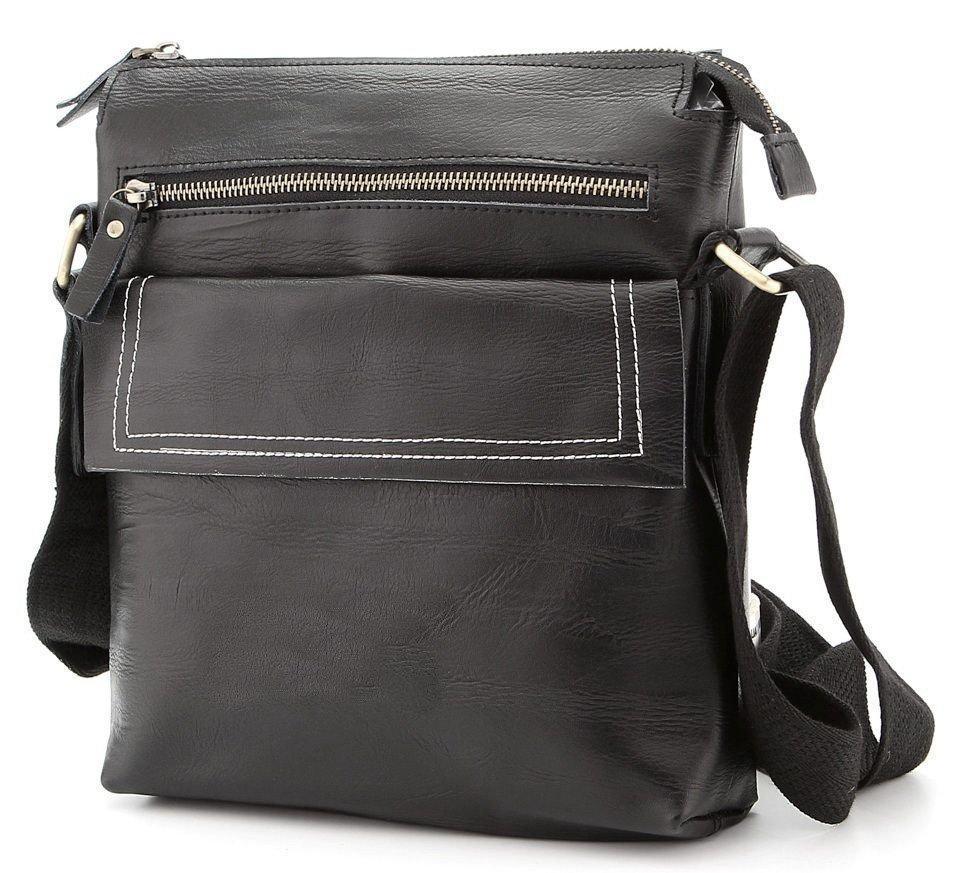 Стильна чоловіча сумка з натуральної шкіри чорного кольору. Аксесуар дуже функціональний і має безліч відділень. Усередині сумки знаходиться основне відділення з двома накладними кишенями для мобільного телефону і один на блискавці, для різних дрібниць. На лицьовій стороні аксесуара знаходиться накладна кишеня. Сумка носиться на плечі. Плечовий ремінь регулюється. Аксесуар може стати відмінним подарунком. Висота 26 див., Ширина 23 див., Глибина 6 див. Стильна чоловіча сумка з натуральної шкіри чорного кольору. Висота 26 див., Ширина 23 див., Глибина 6 див.