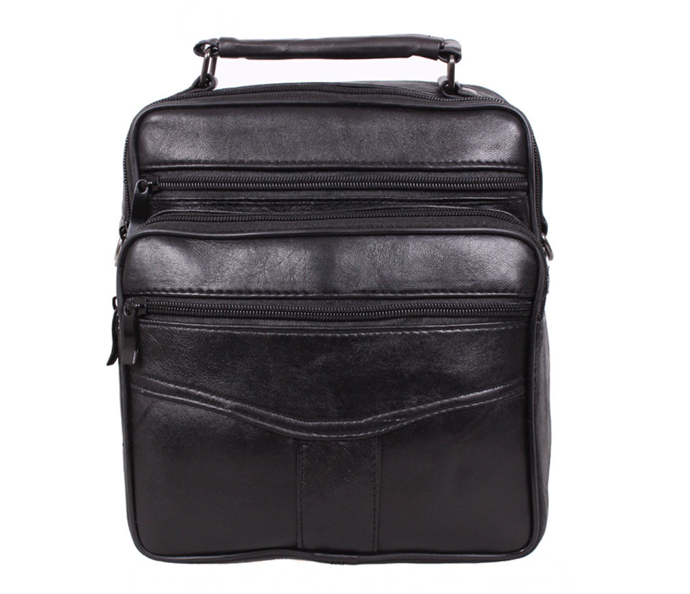 Чоловіча сумка. Модель може бути корисна для людини, яка любить зберігати речі грамотно і строго на своїх місцях. Модель виконана з натуральної шкіри в класичному дизайні. Основне відділення сумки закривається блискавкою, всередині нього також є потайна кишеня на змійці. Три кишені різних розмірів спереду на лицьовій панелі і ще дві кишені на задній зовнішній стороні. Можна носити в руці, або за допомогою плечового ременя.